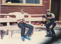 In photo 4, two guys are relaxing and having a beer after skiing on Mt Ruaphehu in the North Island.