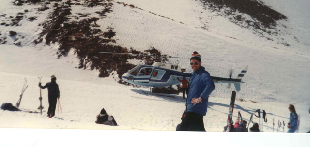 In photo 5, there are skiiers, who have been heliskiing near Mt Cook in the South Island. There is a helicopter in the background.