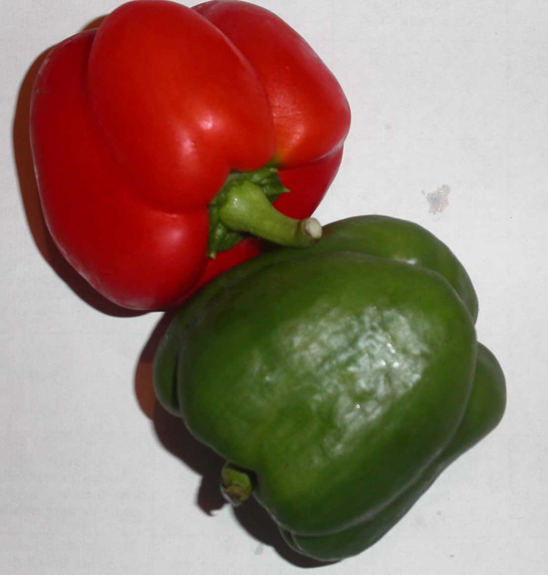 Photo 9: There are many colours of capsicums - red, and green.